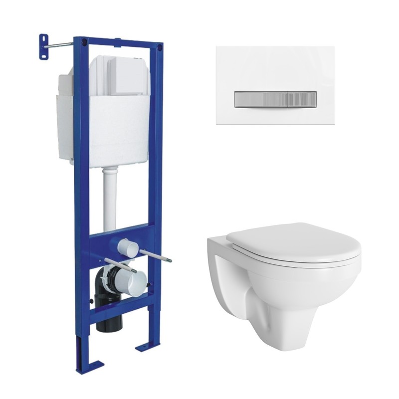 Полный Комплект ATOM Line для монтажа подвесного унитаза: инсталляция, кнопка белая/хром глянец: cтальная рама с антикоррозийным покрытием,