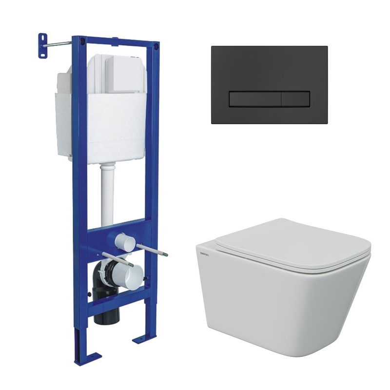 Полный Комплект ATOM Line для монтажа подвесного унитаза: инсталляция, кнопка черная Soft Touch: cтальная рама с антикоррозийным покрытием,