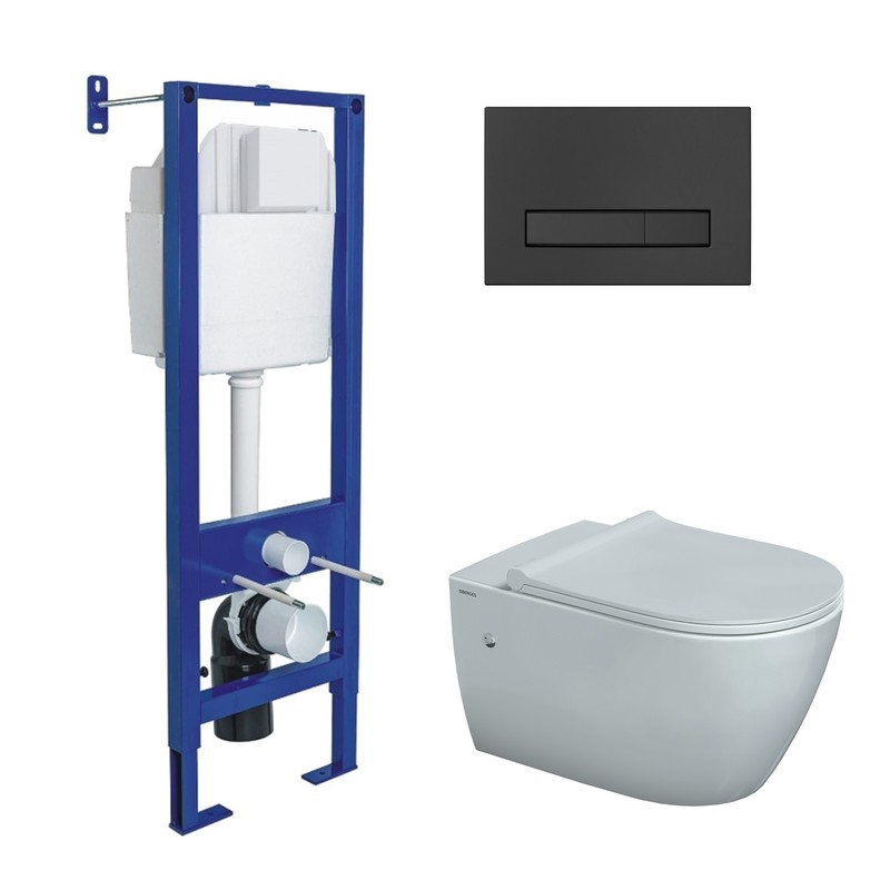 Комплект BERGES: инсталляция АТОМ 410 кнопка Atom Line черная SoftTouch, унитаз MASCON Rimless, сидение дюропласт микролифт, быстросъём