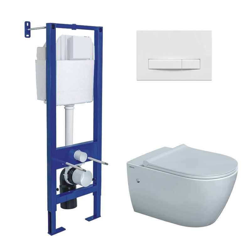 Комплект BERGES: инсталляция АТОМ 410 кнопка Atom Line белая, унитаз MASCON Rimless, сидение дюропласт микролифт, быстросъём