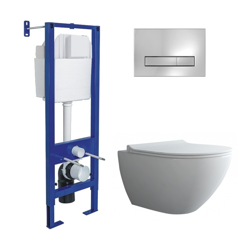 Полный Комплект ATOM Line для монтажа подвесного унитаза: инсталляция, кнопка матовый хром: cтальная рама с антикоррозийным покрытием,