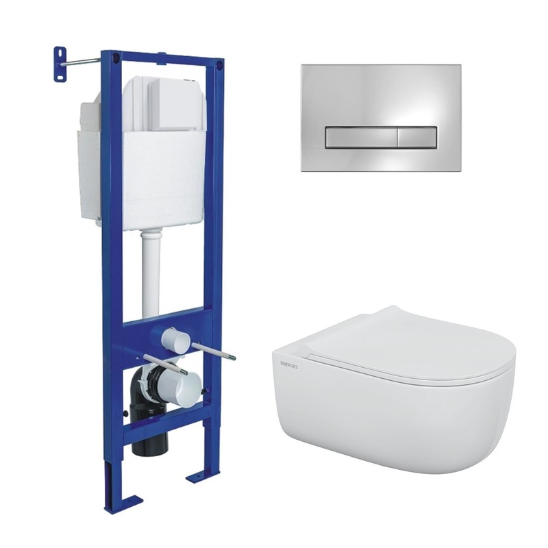 Комплект BERGES: инсталляция АТОМ 410 кнопка Atom Line хром глянец, унитаз EGO XL Rimless, сидение дюропласт микролифт, быстросъём