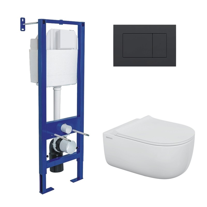 Комплект BERGES: инсталляция АТОМ 410 кнопка Atom черная SoftTouch, унитаз EGO XL Rimless, сидение дюропласт микролифт, быстросъём