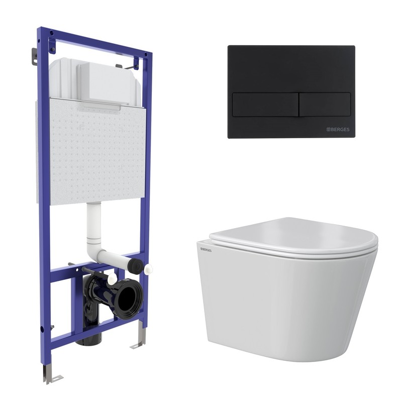 Комплект BERGES: инсталляция NOVUM кнопка L5 Soft Touch черная, унитаз VITA Rimless 49 см, сиденье дюропласт микролифт, быстросъём