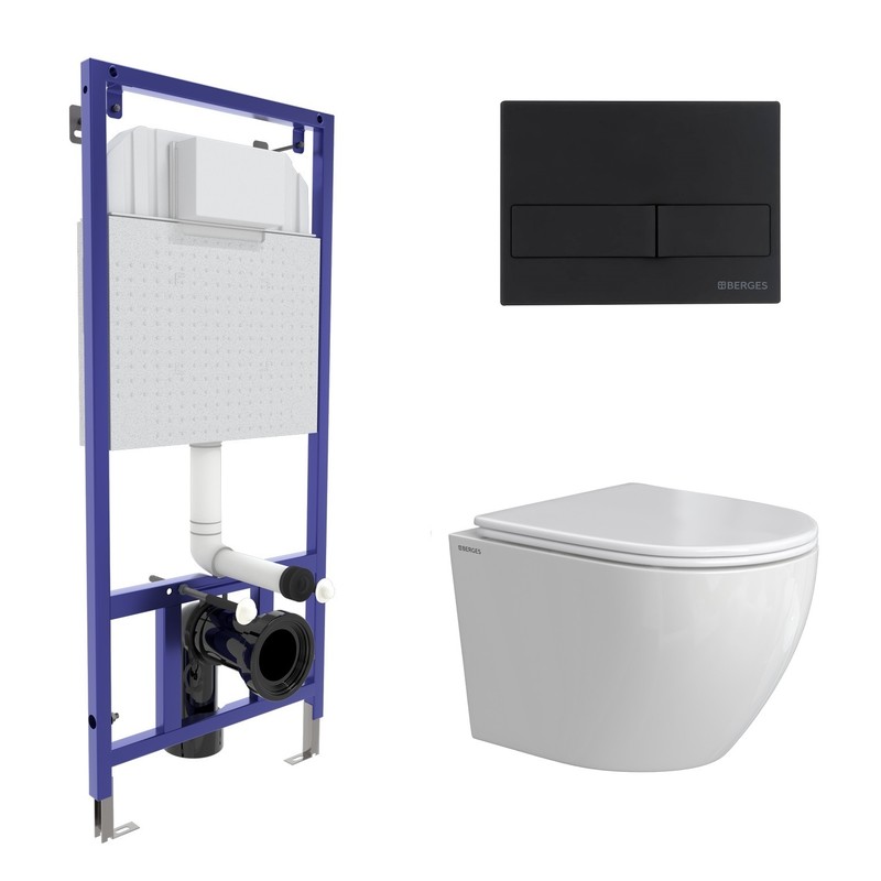 Комплект BERGES: инсталляция NOVUM кнопка L5 Soft Touch черная, унитаз OKUS Rimless 49 см, сиденье дюропласт микролифт, быстросъём