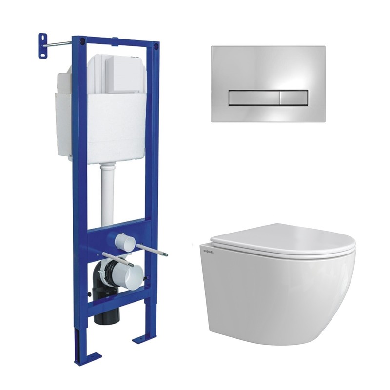 Комплект BERGES: инсталляция АТОМ 410 кнопка Atom Line хром глянец, унитаз OKUS Rimless 49 см, сиденье дюропласт микролифт, быстросъём