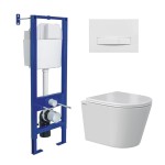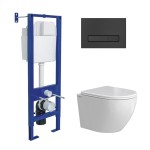 Монтажный кнопочный узел, полный комплект патрубков, лекала для монтажа отверстий; унитаз OKUS Rimless 49 см: Безободковый смыв, сиденье дюропласт, микролифт, быстросъём. Все крепежи для установки в комплекте. Гарантия 10 лет.