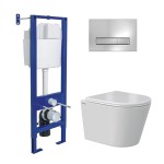 Монтажный кнопочный узел, полный комплект патрубков, лекала для монтажа отверстий; унитаз VITA Rimless 49 см: Безободковый смыв, сиденье дюропласт, микролифт, быстросъём. Все крепежи для установки в комплекте. Гарантия 10 лет.