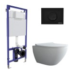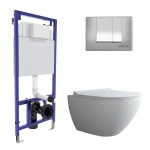 Монтажный кнопочный узел, полный комплект патрубков, лекала для монтажа отверстий; унитаз FLOE S Rimless 51 см: Безободковый смыв, сиденье дюропласт Floe S Slim SO, микролифт, быстросъём. Все крепежи для установки в комплекте. Гарантия 10 лет.