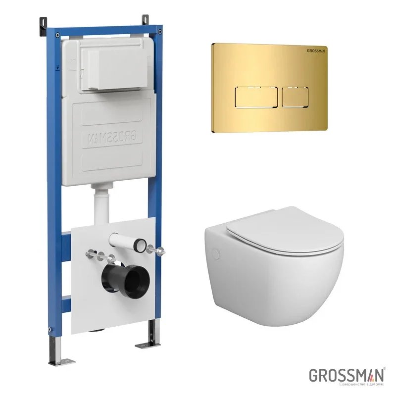 Комплект 3 в 1 Grossman: инсталляция 900.K31.01.000+клавиша 700.K31.03.300.300+унитаз GR-4411S