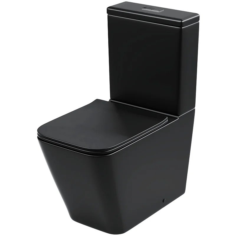 Унитаз GR-4445BMS (640*360*830) ЧЕРНЫЙ МАТОВЫЙ напольный безободковый с тонкой крышкой из 2 мест