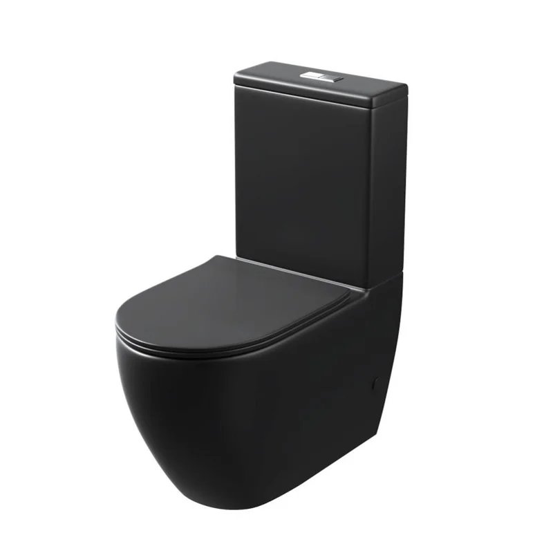 Унитаз GR-4446BMS (675*360*820) ЧЕРНЫЙ МАТОВЫЙ напольный БЕЗОБОДКОВЫЙ с тонкой крышкой, 2 места