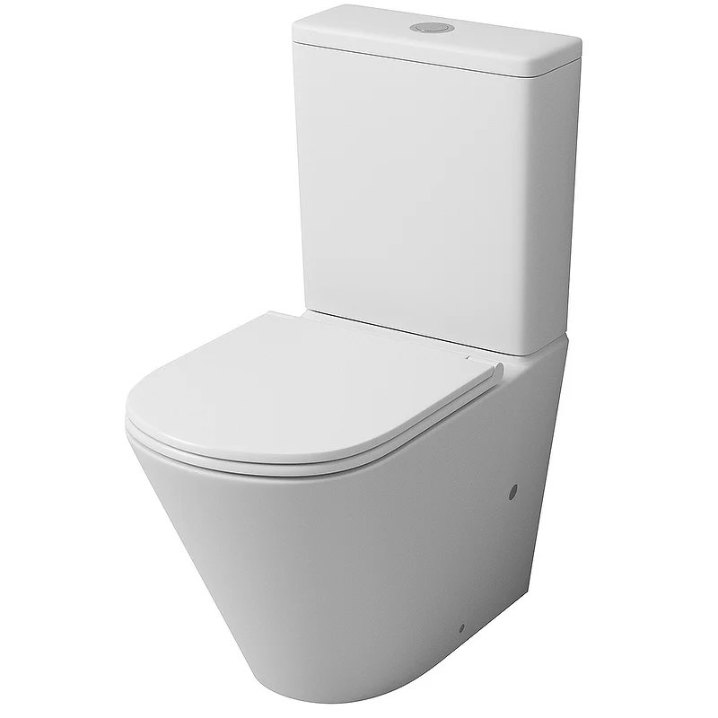 Унитаз GR-4450MS (605*380*825) БЕЛЫЙ МАТОВЫЙ напольный БЕЗОБОДКОВЫЙ с тонкой крышкой, 2 места