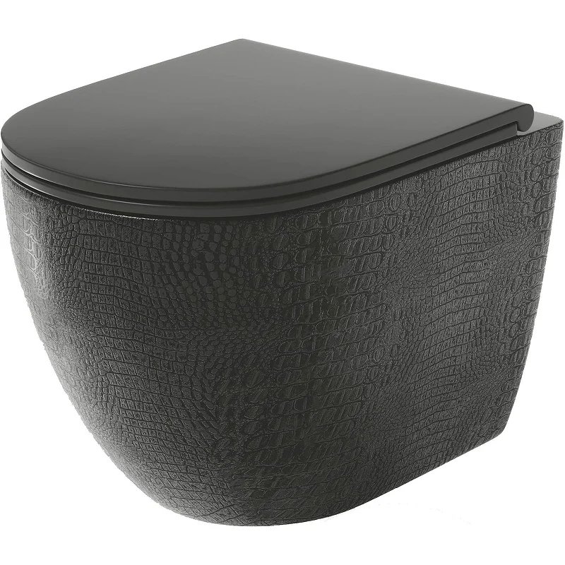 Унитаз GR-4455BBLS (480*365*370) ЧЕРНЫЙ подвесной БЕЗОБОДКОВЫЙ с тонкой крышкой