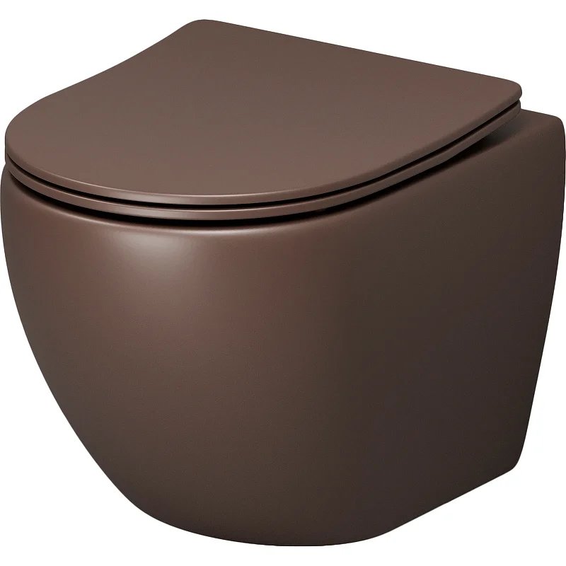 Унитаз GR-4455BRMS Color (485*365*360) КОРИЧНЕВЫЙ МАТОВЫЙ подвесной БЕЗОБОДКОВЫЙ с тонкой крышкой