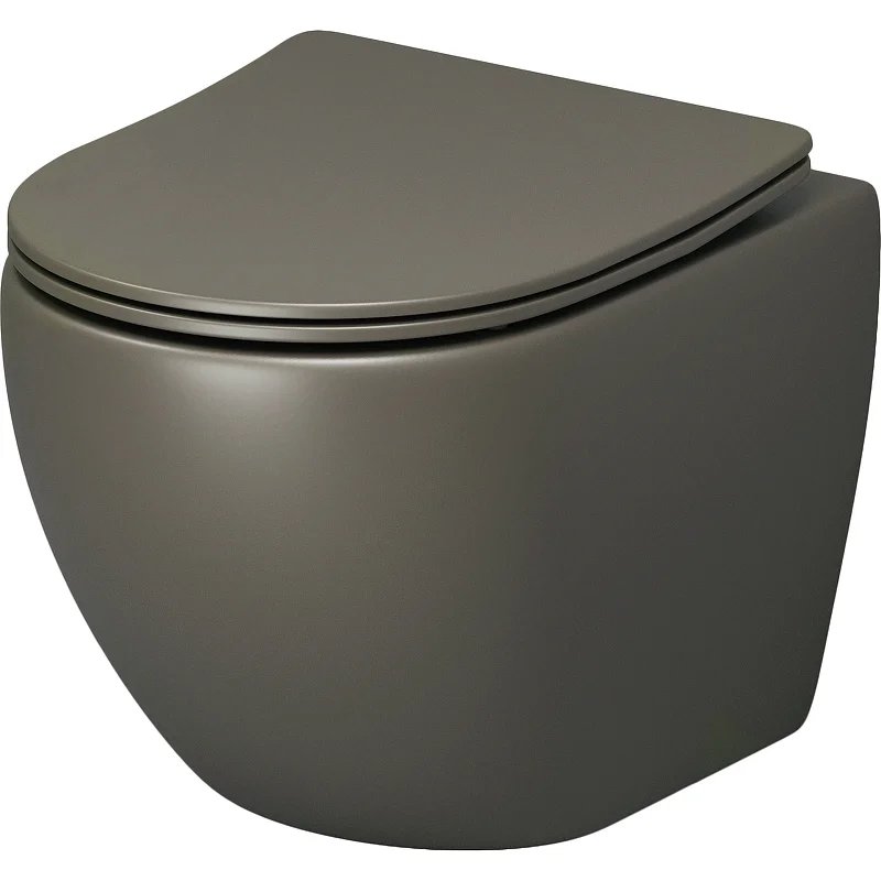 Унитаз GR-4455GSMS Color (485*365*360) ХАКИ МАТОВЫЙ подвесной БЕЗОБОДКОВЫЙ с тонкой крышкой