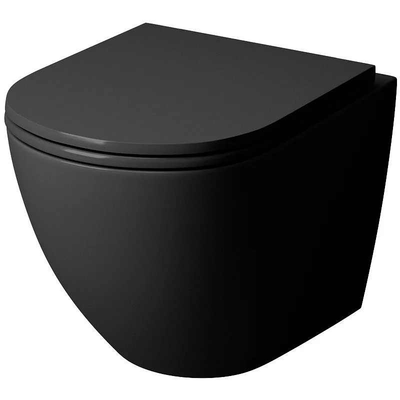 Унитаз GR-4457BMS (520*360*320) ЧЕРНЫЙ МАТОВЫЙ подвесной БЕЗОБОДКОВЫЙ с тонкой крышкой, 1 место