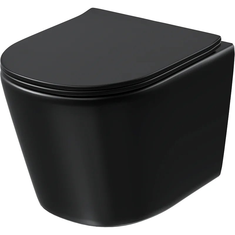 Унитаз GR-4477BMSQ (485*360*330) ЧЕРНЫЙ МАТОВЫЙ подвесной безободковый СМЫВ ТОРНАДО БЕСШУМНЫЙ 1 мест