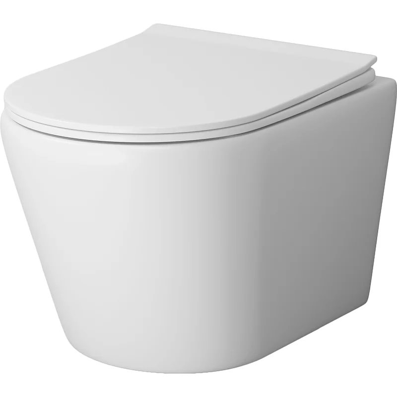 Унитаз GR-4478MS Fly (520*360*350) БЕЛЫЙ МАТОВЫЙ подвесной БЕЗОБОДКОВЫЙ с тонкой крышкой, 1 место